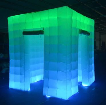 -Inflatable 9.2 x 9.2 x 9.2 Booth with LED color options & two entryways